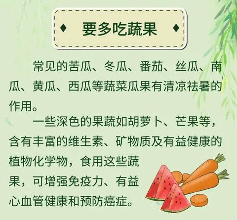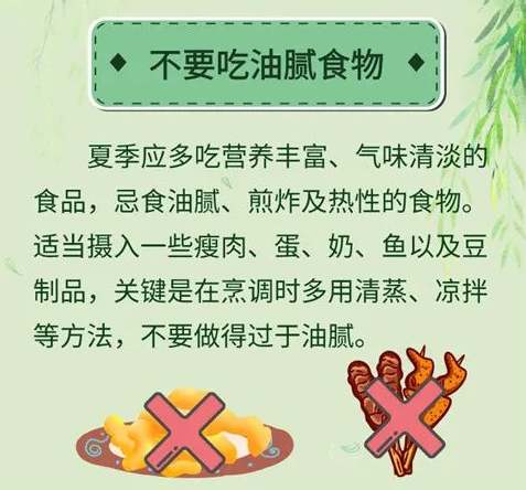 從飲食角度看,夏季飲食宜清淡,適當(dāng)多吃蔬菜、瘦肉和時令水果,少吃辛辣、肥甘厚味之品。尤其咱東北地區(qū)夏季是燒烤旺季,對于燒烤一要注意飲食衛(wèi)生,避免急性胃腸炎的發(fā)生;二要有所節(jié)制,避免過食肥甘而生內(nèi)熱,加之環(huán)境的暑熱,內(nèi)外相合而生百病。